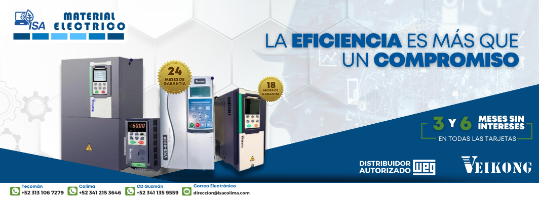 ISA Material Eléctrico, con una trayectoria de más de 2 décadas, ha surgido como líder en soluciones eléctricas integrales. Especializados en servicios personalizados, nos destacamos como distribuidores directos de marcas de renombre como WEG y Veikong, asegurando productos de alta calidad y tecnología de vanguardia. Nuestro compromiso no solo se centra en ofrecer componentes eléctricos de primera, sino también en brindar asesoría técnica y soporte continuo para garantizar el éxito de cada proyecto. Además, como dato clave, destacamos que realizamos envíos a toda la República Mexicana, llevando nuestras soluciones eficientes y confiables a cada rincón del país.